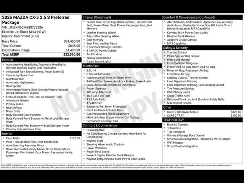 Jet Black Mica 2025 Mazda CX-5 2.5 S Preferred Package AWD 6-Speed Automatic SKYACTIV® 2.5L 4-Cylinder DOHC 16V